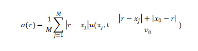 采用合成孔径成像技术,使用相关域内的观测数据与二维波速扫描给出的偏移速度,重建地质异常体α的空间图像,展现混凝土内的界面位置与异常体形态。合成孔径成像偏移成像公式: