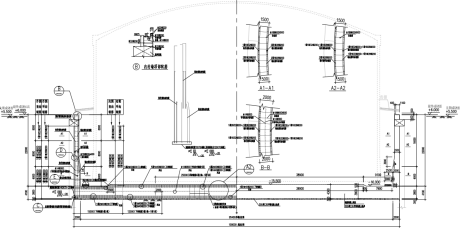 于2022年1月22日在某液化天然气应急调峰站项目接收站工程下沉式LNG储罐基坑进行混凝土密实性检测。该大体积混凝土构件为圆柱体,直径100m,高度3.8~4.3m,其结构如图7所示。检测过程中外圈有结构物正在施工,无法检测径的位置,现场采集布置如图8所示。