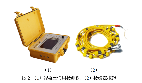 采用北京同度工程物探技术公司开发的混凝土通用检测仪,以及专用的检波器拖缆,如图2所示。