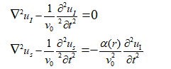可得到非均匀介质中入射波uI与散射波us分别满足的波动方程: