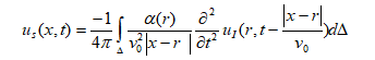 该式表明,散射波的强弱与散射强度α(r)的大小、入射波激振的加速度成正比,与散射体的距离成反比。这表明散射波的传播具有局部特性,这为高分辨勘探奠定了物理基础。