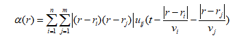 这里的α(r)是波速平方差的百分比,实际上是介质力学模量差异的百分比,称为散射系数,其物理含义类似于反射系数。它仅在非均匀介质的界面上不为零。