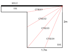 本次检测中肋板宽度1.7m~1.85m,较宽,因此需要划分为4个CT截面。同时π型梁肋板顶板路面上存在各种设施,因此截面划分方法如图8所示。