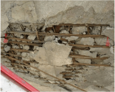 某处π形梁过渡截面位置,存在一处混凝土掉块(如图3所示),现已粘钢修复(如图54