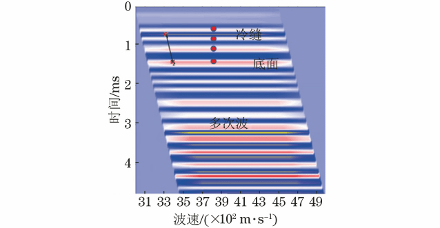 根据共炮点散射波记录,对炮点下方混凝土的波速与散射界面位置进行扫描,确定混凝土的波速分布,扫描结果如图4所示。