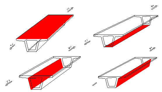 在现场检测过程中,根据桥梁CT技术原理的要求将不同类型的桥梁分解为不同的梁板,在梁板内布置CT检测。在承秦高速中检测对象主要是T型梁和箱梁,检测中T型桥梁分解为顶板和腹板两个面(见2),箱梁分解为顶板、底板、左腹板和右腹板四个面(见图3)。