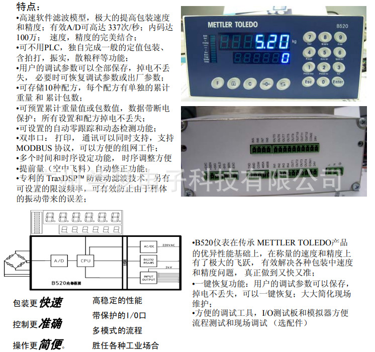瑞士Mettler-Toledo梅特勒托利多B520.10,B520.00称重仪表