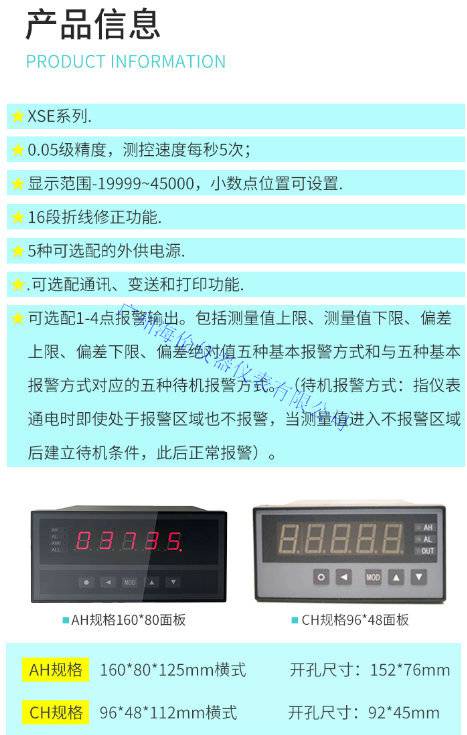 XSE***数显表适合于工业现场的***测量,与各类模拟量输出的传感器、变送器配合,完成温度、压力、流量、液位,成分、力、位移等物理量的测量控制。