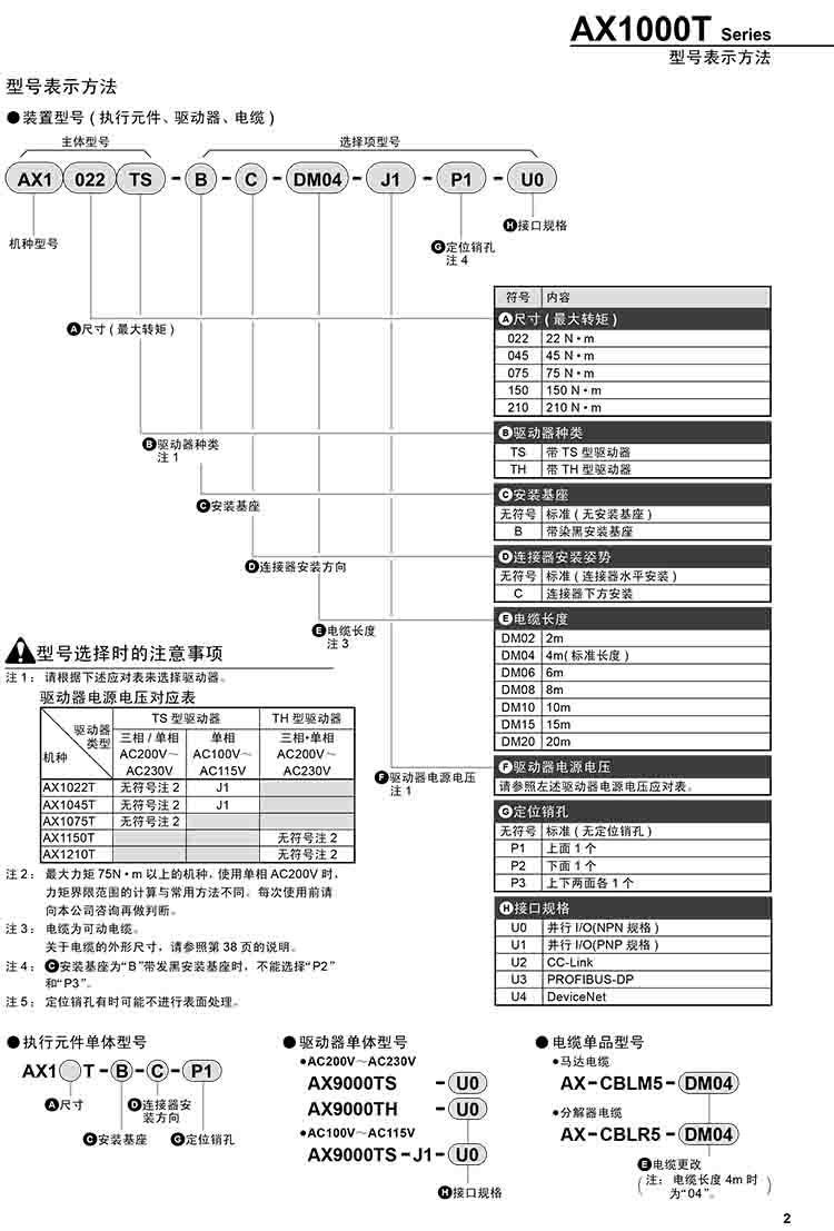 3、在AX2000T·AX4000T的基础上添加了AX1000T:驱动器·执行元件·电缆可以自由组合,便于维护管理