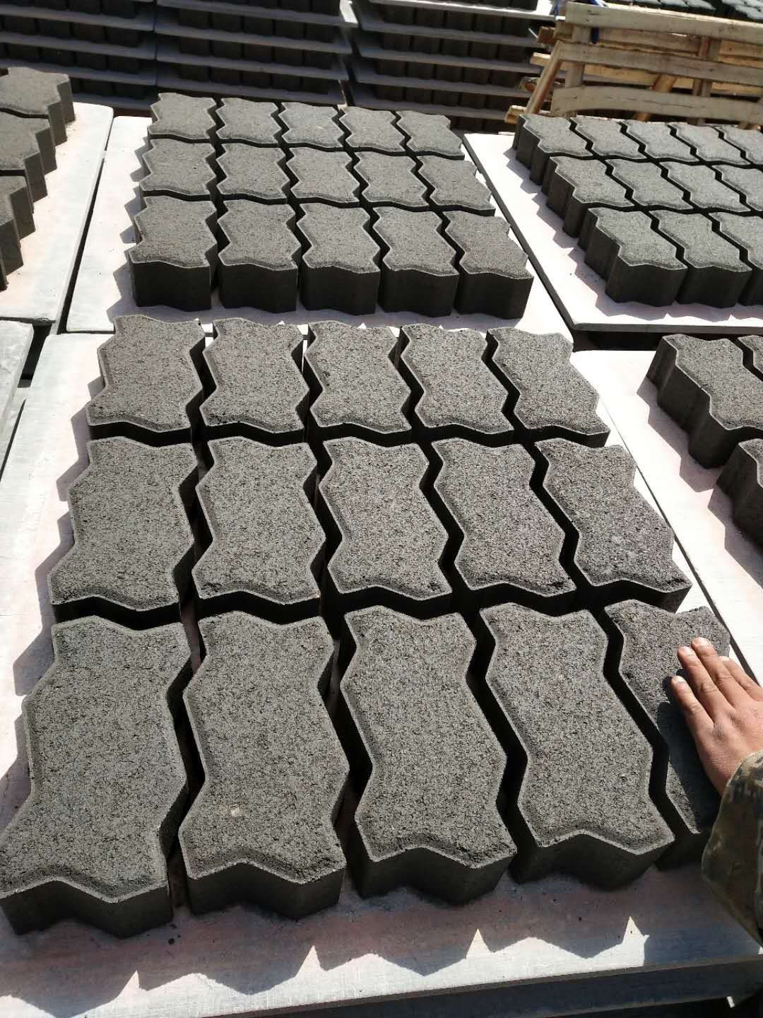 4.多数研究者以为块体的形状对路面性能有影响:异形块的嵌锁性能通常比矩形块好,四边嵌锁的块体其性能优于两边的嵌锁块体。
