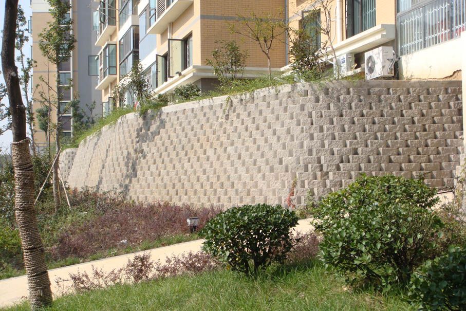 3、抗山体滑坡能力强,砖与砖之间上下互锁,可以形成很高的咬合力,不易冲塌。