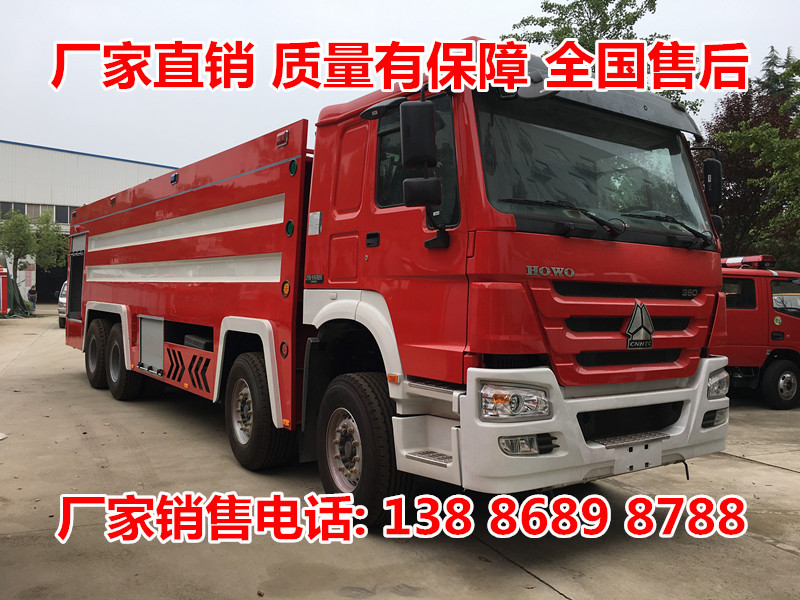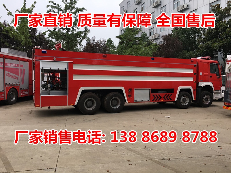 20-25吨水泡两用消防车JDF5410GXFPM240型泡沫消防车,采用重汽豪沃ZZ5437V4667E1底盘改装而成。整车由消防员乘员室和车身两大部分组成,乘员室为单排驾驶室,可乘坐2人,该车为外露罐结构,车身前部为器材箱,中部为水罐,后部为泵房。载液罐体为碳钢,与底盘采用弹性连接,载水20450kg(PM240),泡沫液量3100kg,装备了上海雄真消防设备有限公司生产CB20.10/30.60型中低压消防泵,额定流量60L/S,车顶安装成都威斯特消防机械有限公司生产的PL48(PM160)或PS60W(SG160)型车用消防炮。该车大的特点是载液量大、操控性好、维修简便。可广泛应用于公安消防队、厂矿企业及社区、码头等场所,扑救大型油类火灾或一般物质火灾。