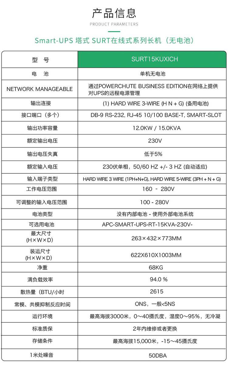 APC公司的Smart-UPS RT,15kVA 230V不带电池,适用于中国