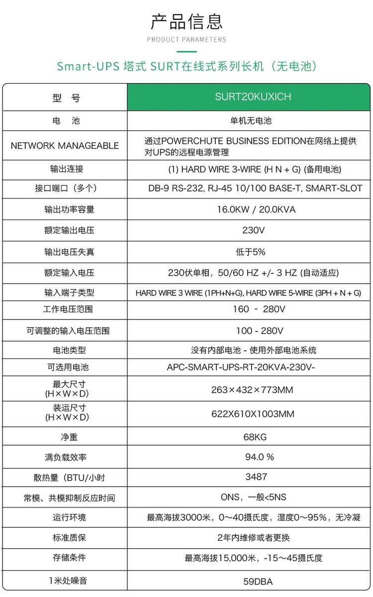 APC公司的Smart-UPS RT,20kVA 230V不带电池,适用于中国