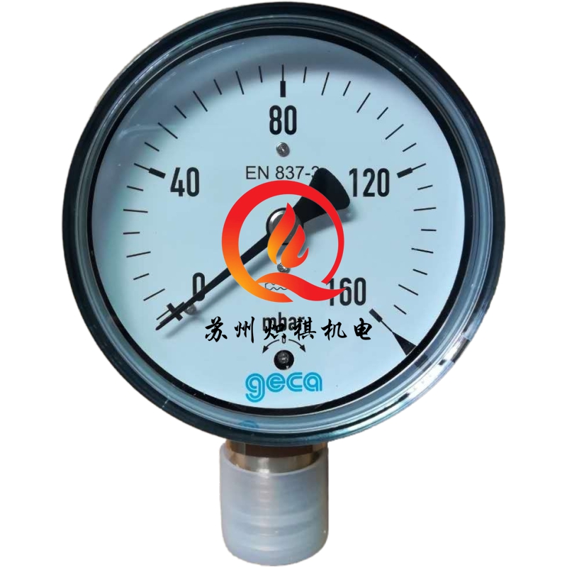 KFM 160RB100霍科德燃气压力表,压力表通过表内的敏感元件(波登管、膜盒、波纹管)的弹性形变,再由表内机芯的转换机构将压力形变传导至指针,引起指针转动来显示压力。