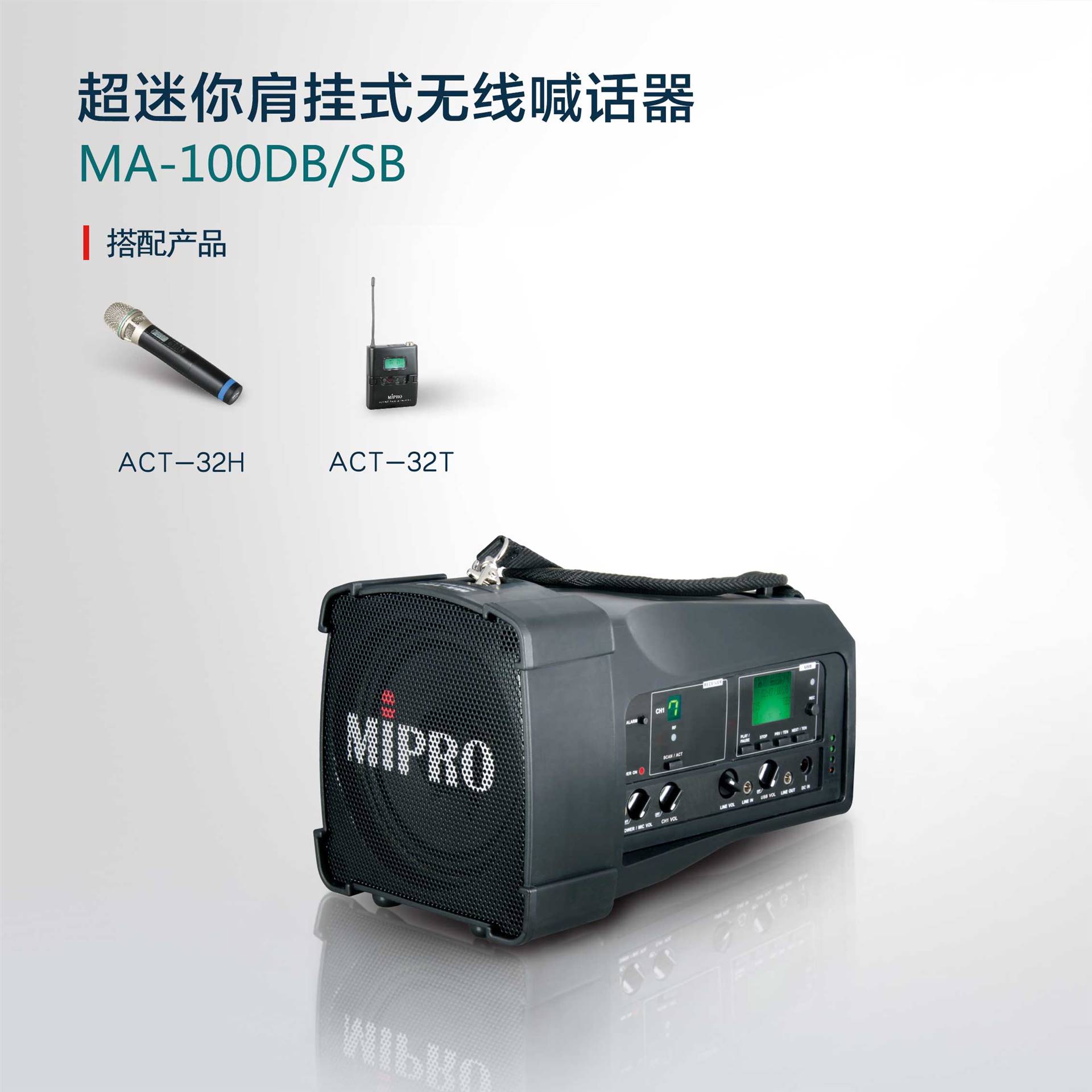 MA-100 DB / MA-100 SB 肩挂式无线喊话器是当今市面 袖珍、功能 齐全、声音 宏亮清晰的创新机种。搭配各种手握式、领夹式或头戴式发射器使用在教学、集会、各种活动的、展览会的广告、游览车导游或游行队伍的指挥、选举活动的随身扩音、计算机多媒体的鉴听等小型场所是 方便的扩音利器。