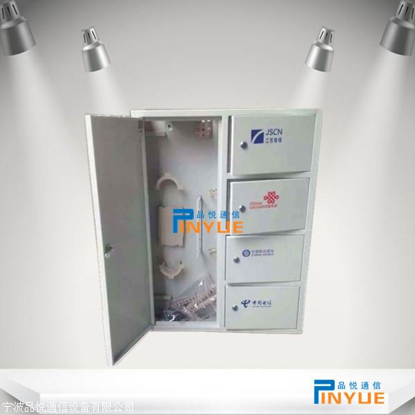 室内144芯四网合一箱各种型号规格-------品悦144芯四网合一箱简单介绍:FTTH144芯四网合一箱用于光缆与光通信设备的配线连接,通过配线箱内的适配器,用光纤跳线引出光信号,实现光配线功能。适用于FTTH工程光缆到楼后使用,安装于楼道、地下室、机房和大楼外墙。光缆也可以经分光配线箱开拨盘绕后与光缆熔接引出,实现光缆的直通功能,满足传统传输网络工程的需求。