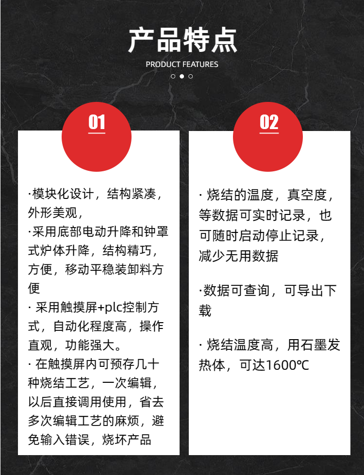 4· 在触摸屏内可预存几十种烧结工艺,一次编辑,以后直接调用使用,省去多次编辑工艺的麻烦,避免输入错误,烧坏产品。