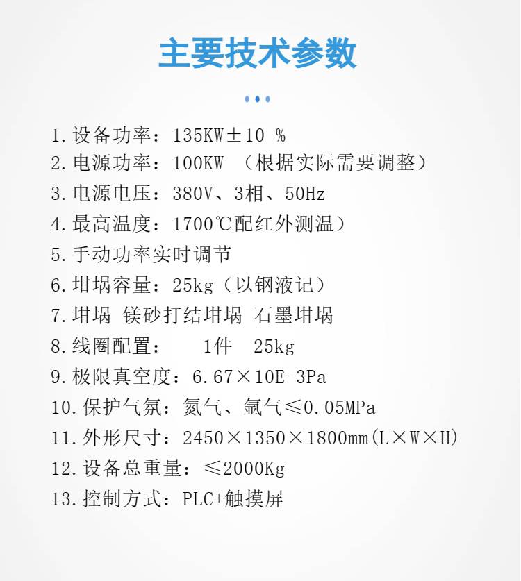 1设备功率:135KW±10 %