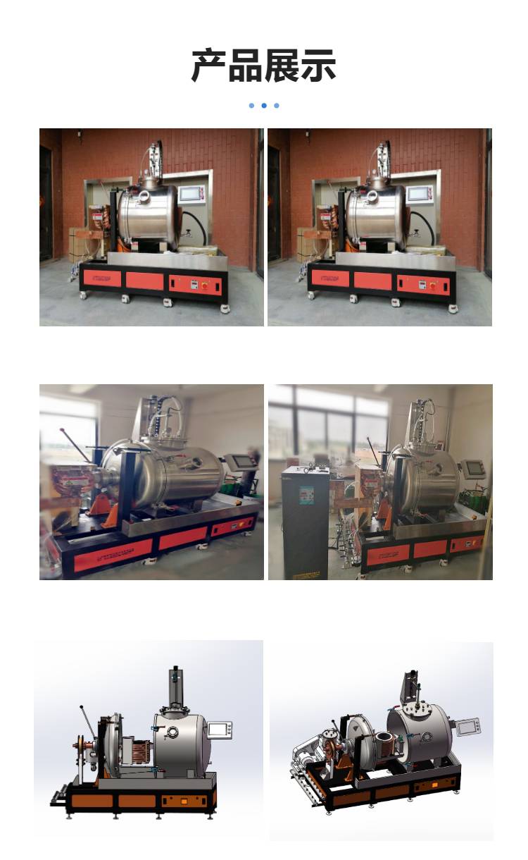 本产品为卧式对开式结构设计,结构新颖外形美观。主要供大专院校、科研单位及生产企业在真空或保护气氛条件下对金属材料(如不锈钢、镍基合金、铜、合金钢、镍钴合金、稀土钕铁錋等)的熔炼处理,也可进行合金钢的真空精炼处理。
