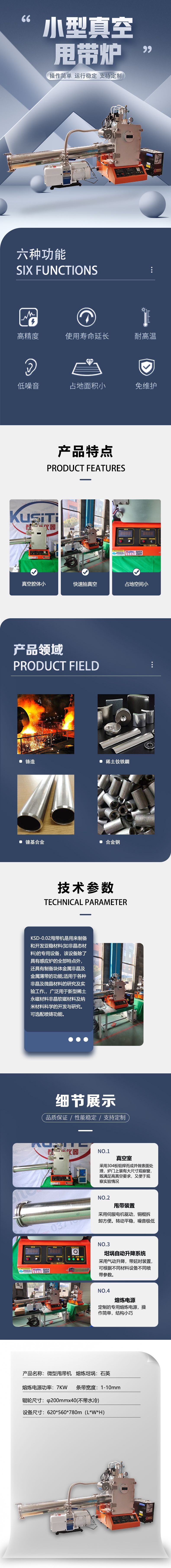 1、真空室:采用304板组焊而成并做表面处理,炉门上装有大尺寸观察窗,既满足高真空要求,又便于观察实验情况。