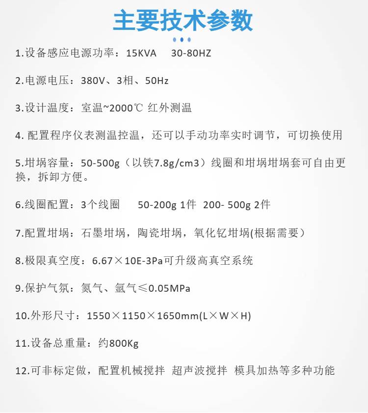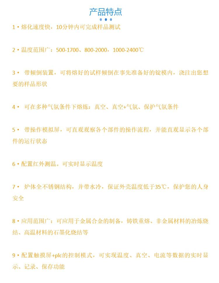 8·应用范围广:可应用于金属合金的制备,铸铁重熔、非金属材料的冶炼烧结、高温材料的石墨化烧结等