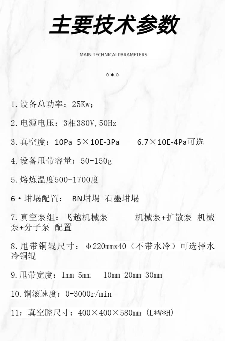 二、真空甩带炉真空甩带机真空速凝炉主要技术参数