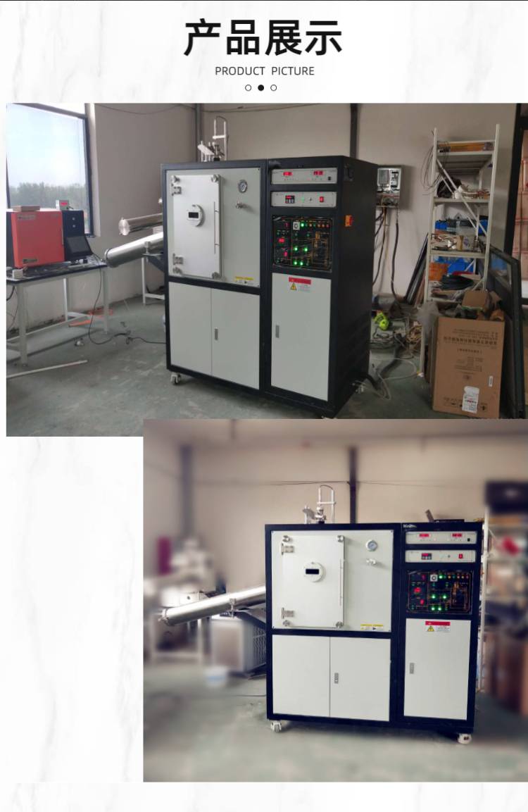 1、真空室:采用304板组焊而成并做表面处理,炉门上装有大尺寸观察窗,既满足高真空要求,又便于观察实验情况。