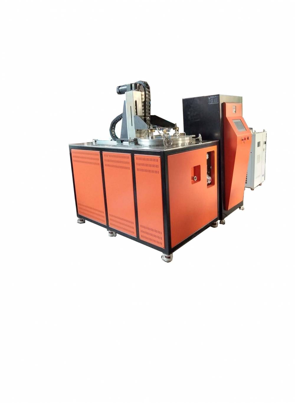 4.真空系统由油扩散泵及机械泵组成,真空阀门为本公司设计生产的高真空挡板阀,配合数显真空计及PLC实现高,低 真空自动控制。