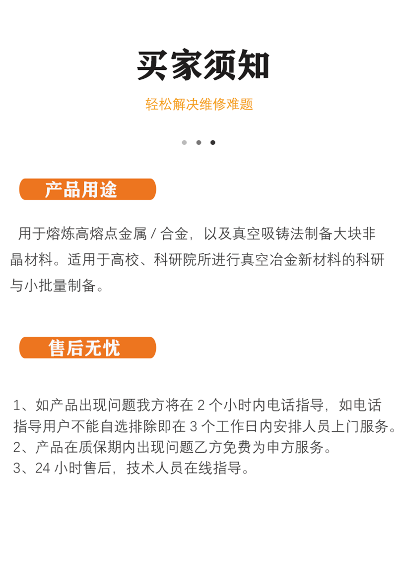 用于熔炼高熔点金属/合金,以及真空吸铸法制备大块非晶材料 |