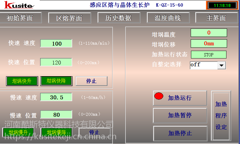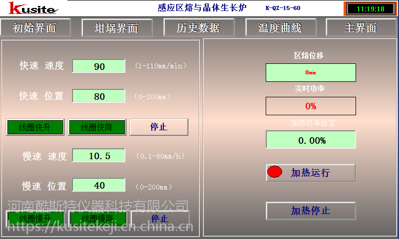 8.坩埚升降速度: 位移行程 150mm(步进电机控制)