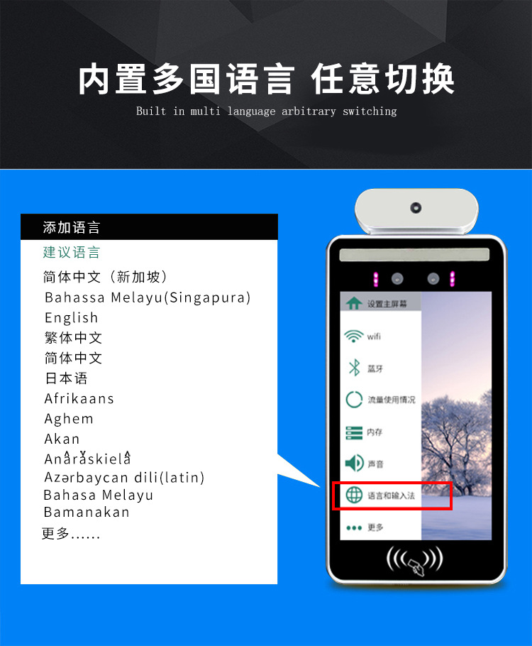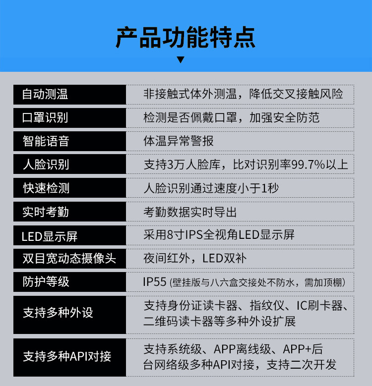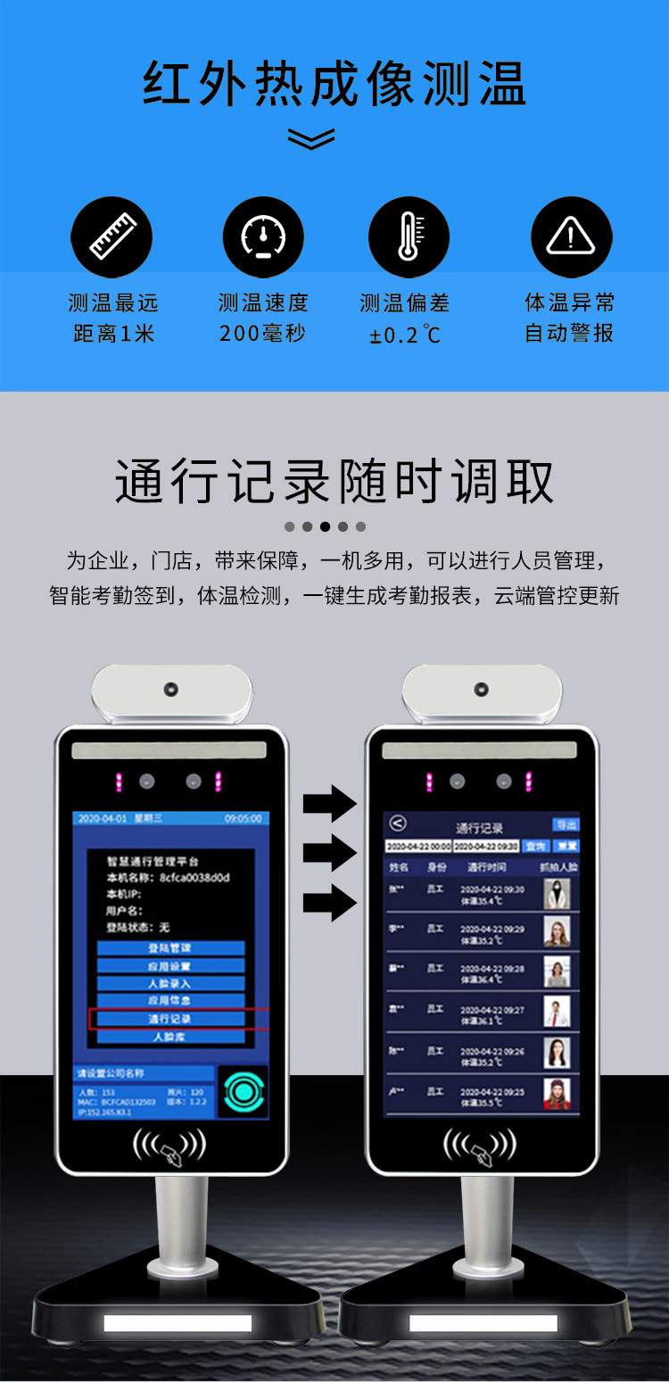 人脸识别测温一体机 刷脸门禁考勤管理系统
