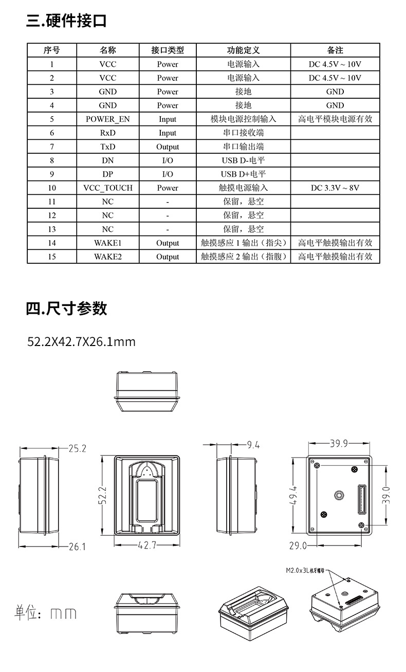 3. 功耗:采用手指触摸感应,静态功耗 < 15uA,动态功耗 < 100mA