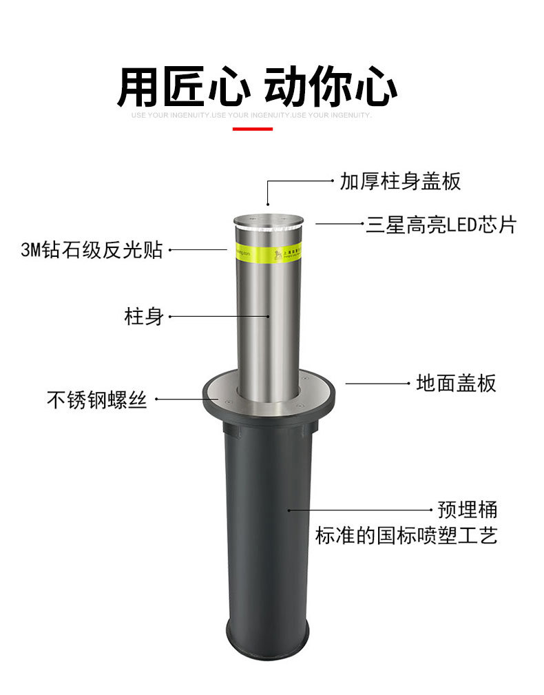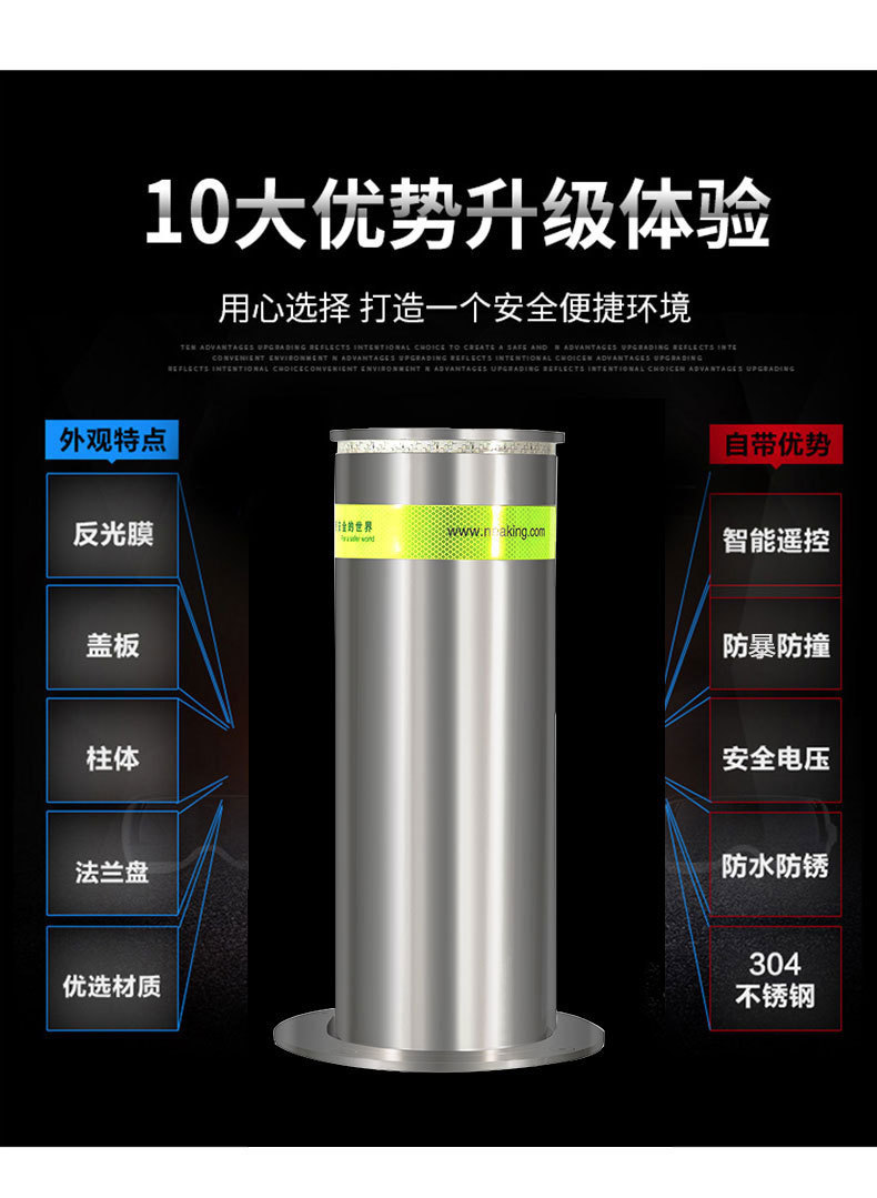 学校门口升降路桩 阻车路障 304不锈钢液压一体式