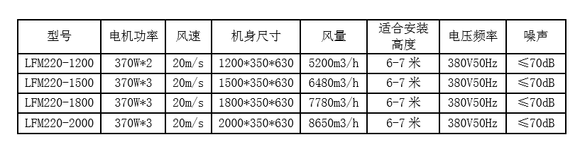 此款为LFM220系列超大风量风幕机,适合按装在厂区、大型环卫站等门洞高度达到6-7米的高度,因为超大的风量,所以噪声也比较大。