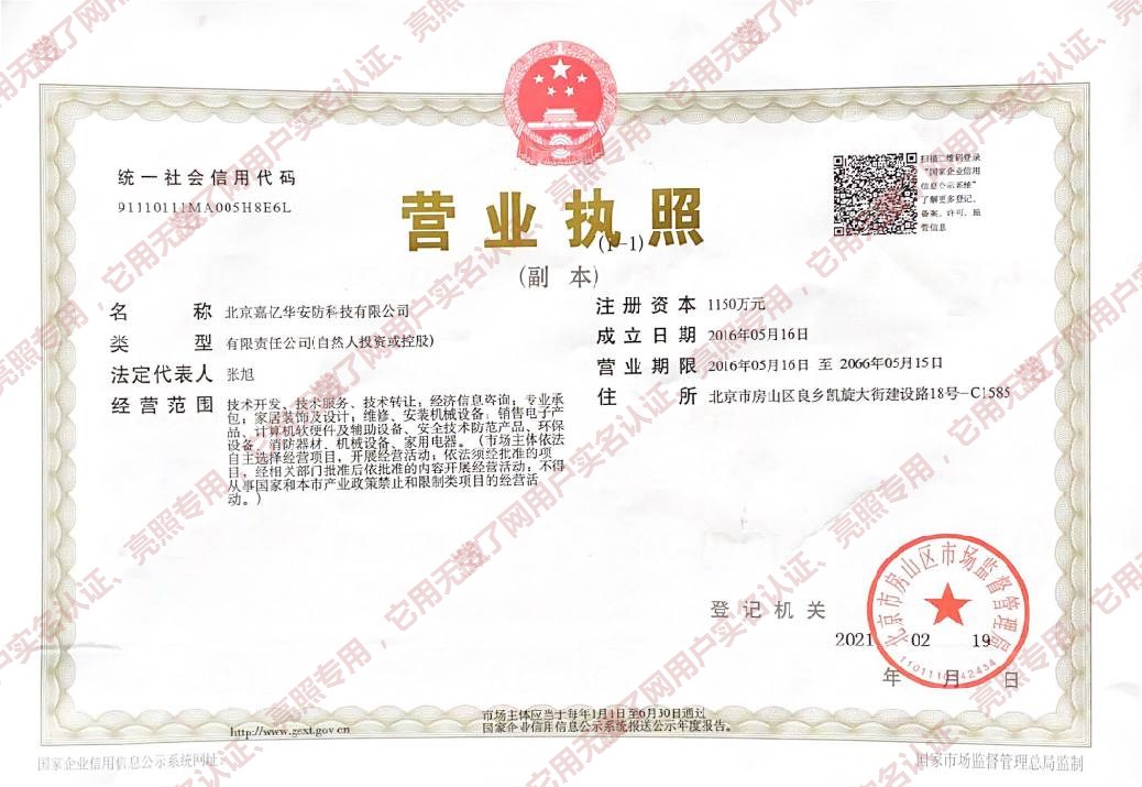 - 北京嘉亿华安防科技有限公司
