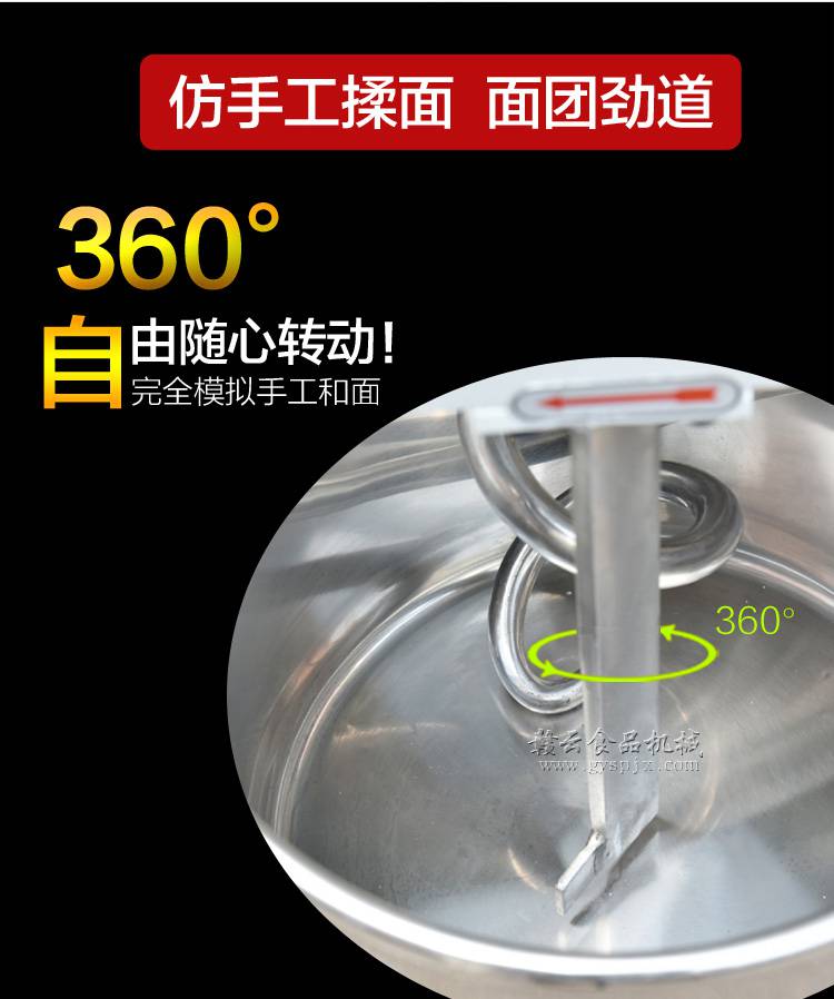 4:仿手工和面,快速搅拌,搅拌均匀,无死角搅拌,和面柔韧劲道,口感十足;适用于酒店厨房,面点房,中餐店等餐饮服务单位;