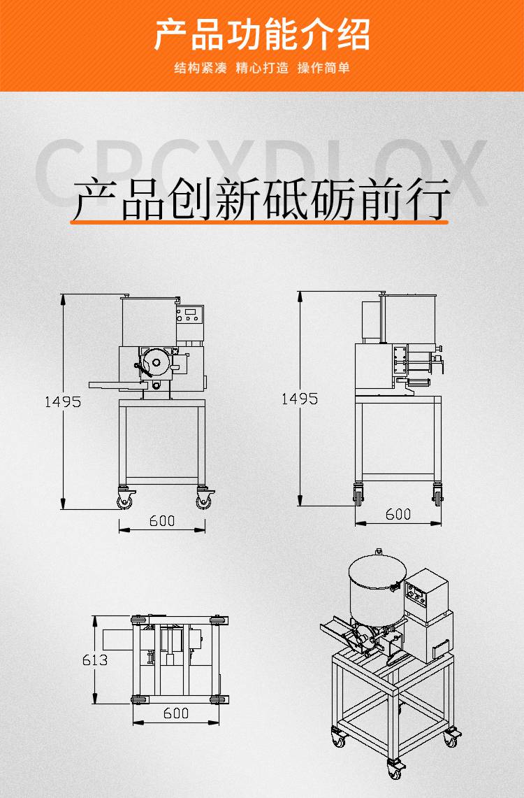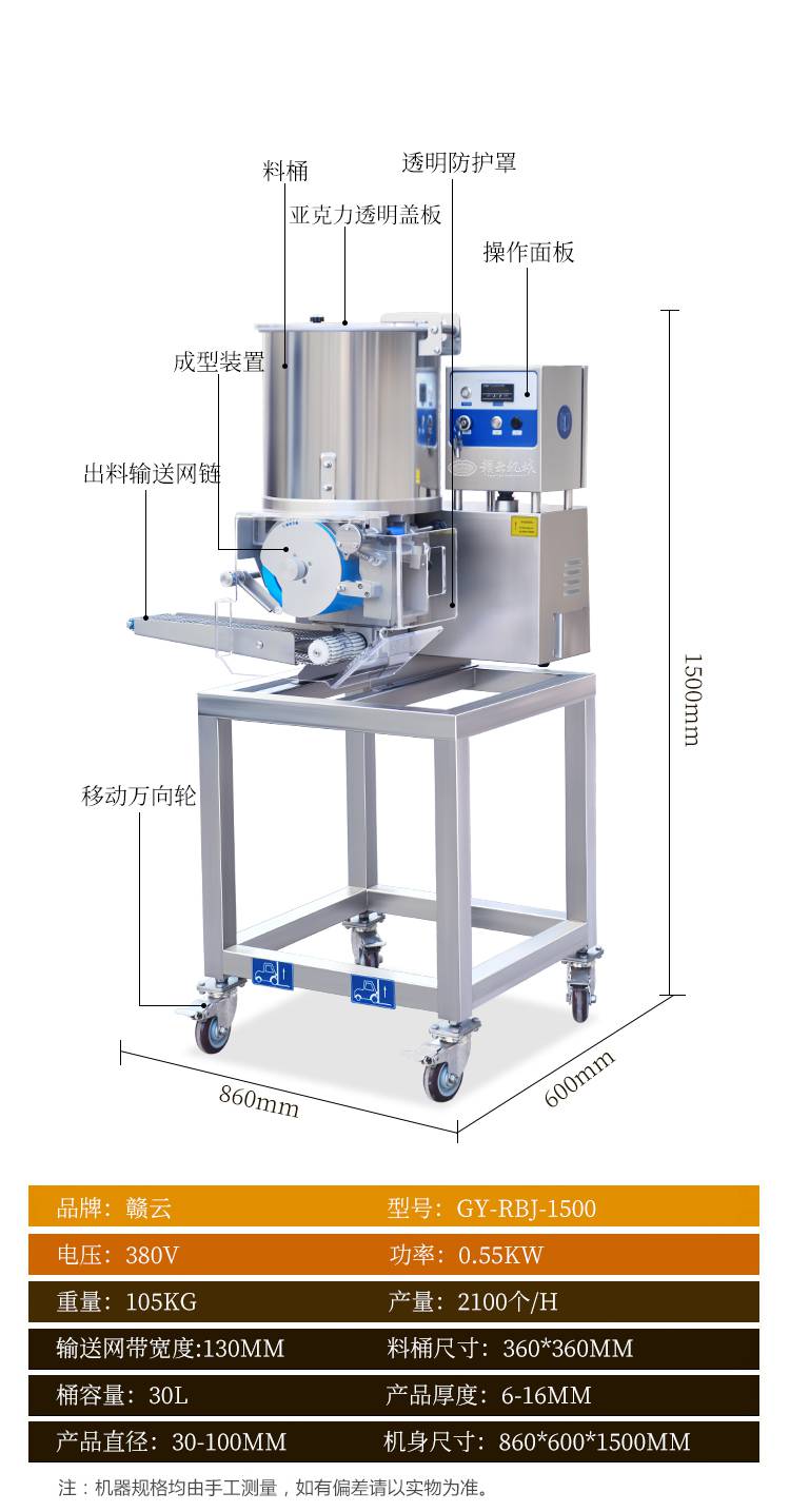 赣云牌1500型全自动肉饼成型机机器参数: