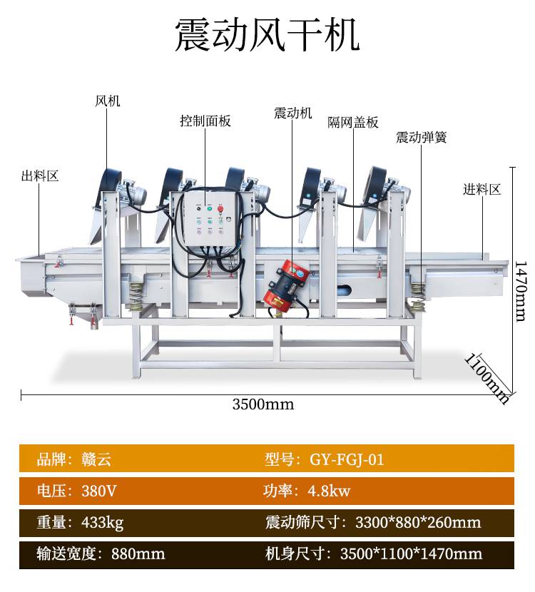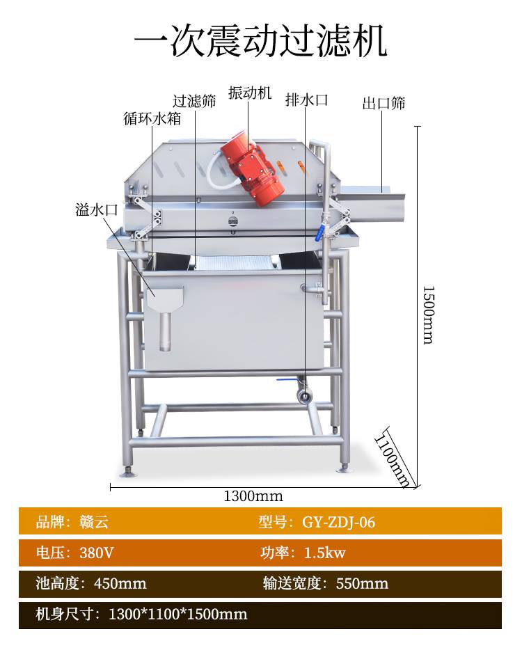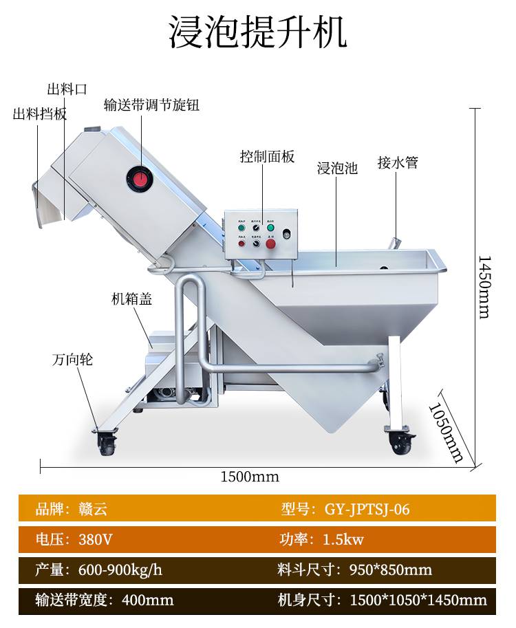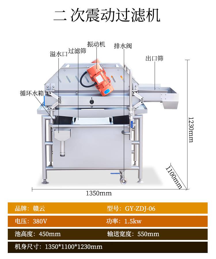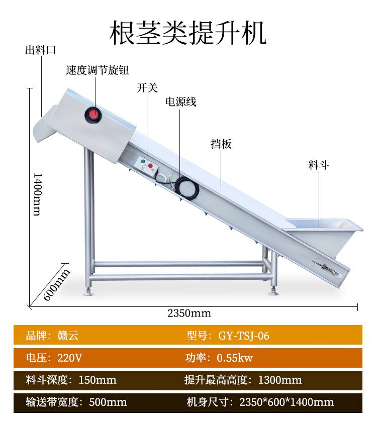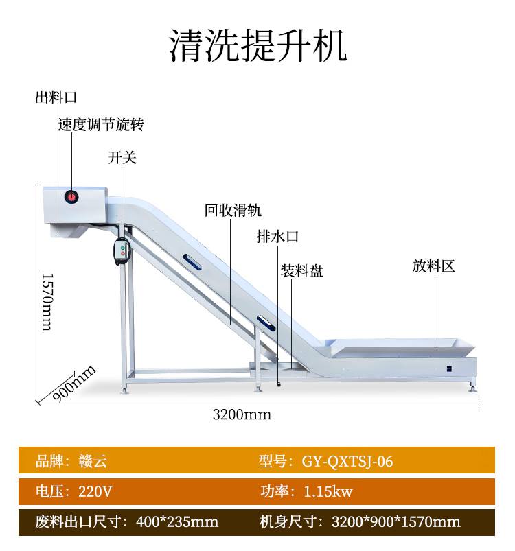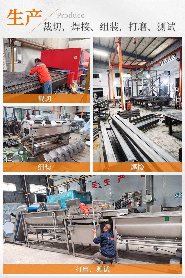 4:赣云二合一净菜加工流水线由一次提升机,毛辊去皮机,二次提升机,分选机,312切菜机和六工位分选机,智能切菜机,输送提升机,清洗提升机,一次涡流清洗机,一次震荡过滤机,二次涡流清洗机,二次震荡过滤机,振动风干机组成。
