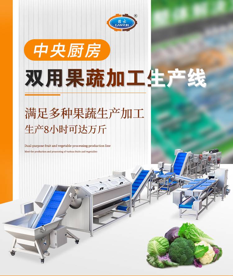 1:赣云二合一净菜加工流水线是一条双用的果蔬加工生产线,能够满足多种果蔬加工生产,生产8小时可达万斤。