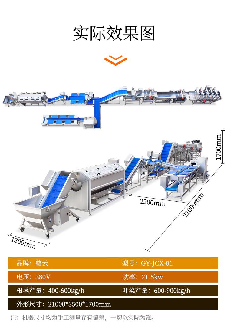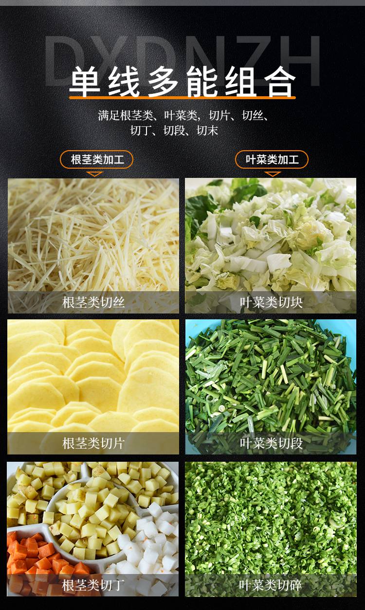 3:赣云二合一净菜加工流水线,能够满足根茎类,叶菜类,切片,切丝,切丁,切段,切沫。