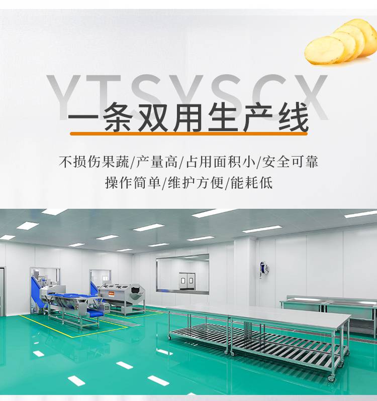 赣云二合一净菜加工双用果蔬加工流水线特点: