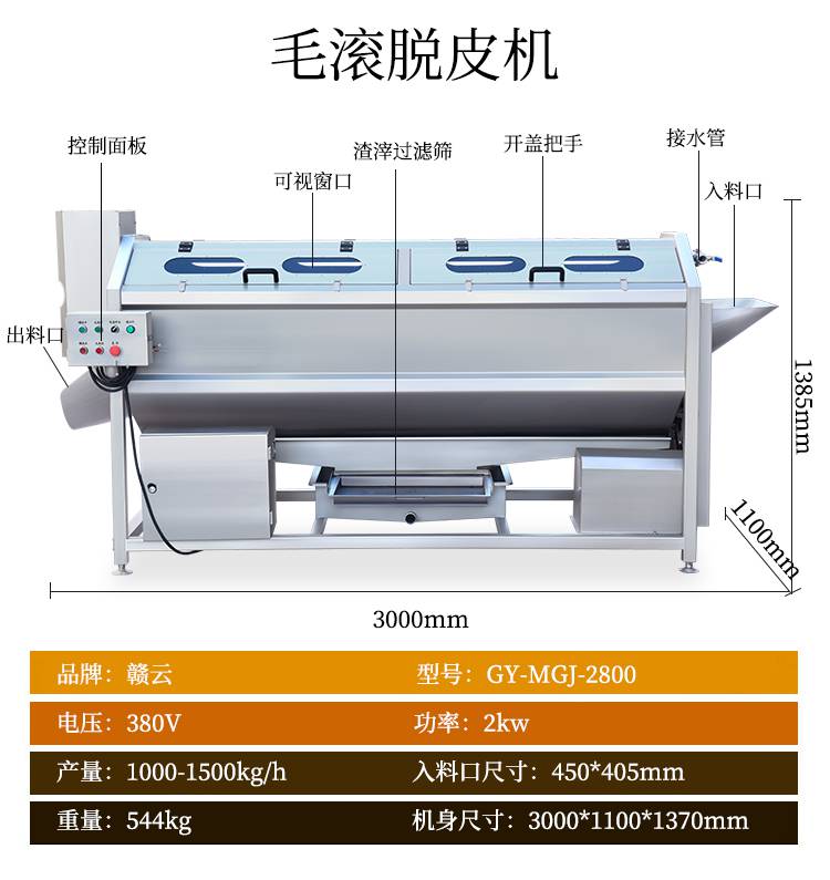 2:赣云二合一净菜加工流水线产量高,占地面积小,安全可靠,操作简单,维护方便,能耗低,清洗不损伤果肉。