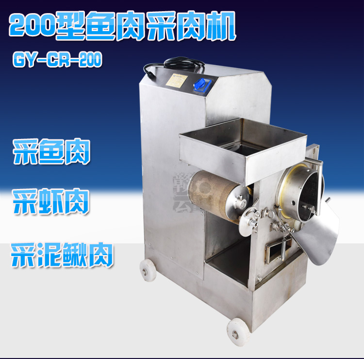 赣云牌自动去鱼骨鱼刺机,工作原理是:通过采肉带和滚筒间的挤压原理将鱼肉和鱼骨分离出来,因此也称为鱼肉采肉机,也可采淡水鱼肉,海鱼肉、虾、蟹、泥鳅等,比手工采肉效率更高,成本更低、干净卫生,是鱼糜制品生产、鱼丸生产常用设备之一。
