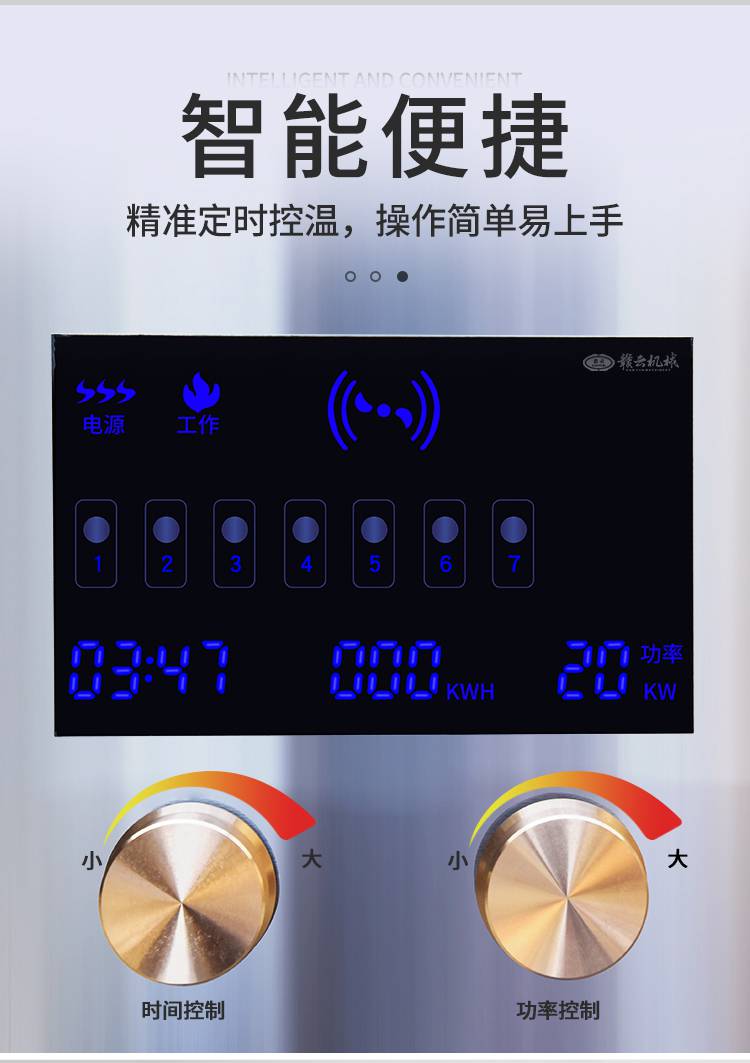 4:智能便捷的操控面板,定时控温,操作简单,容易上手。锅体加配了旋转装置,旋转螺纹带动大齿轮有效的控制锅体的位置,按钮控制便捷高效。