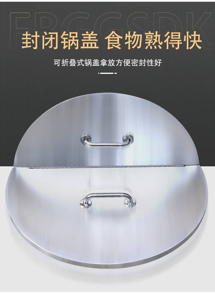 3:可折叠式锅盖拿方方便,密封性好,封闭锅盖,食物熟的更快,400L大容量料桶,每一次熬汤,熬粥,卤肉,食品加热等更大量,锅体采用一体熔铸,加厚锅壁加热快速使用寿命长。