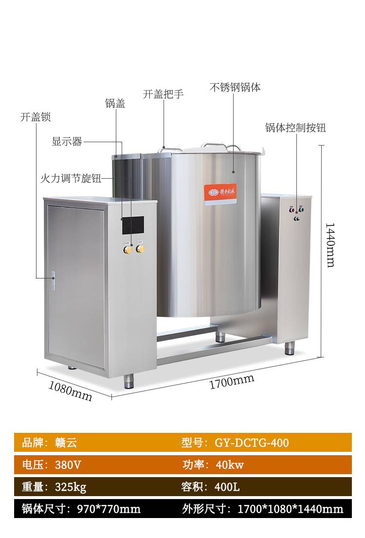 赣云牌400型中央厨房可倾式电磁摇摆汤煮锅机器参数: