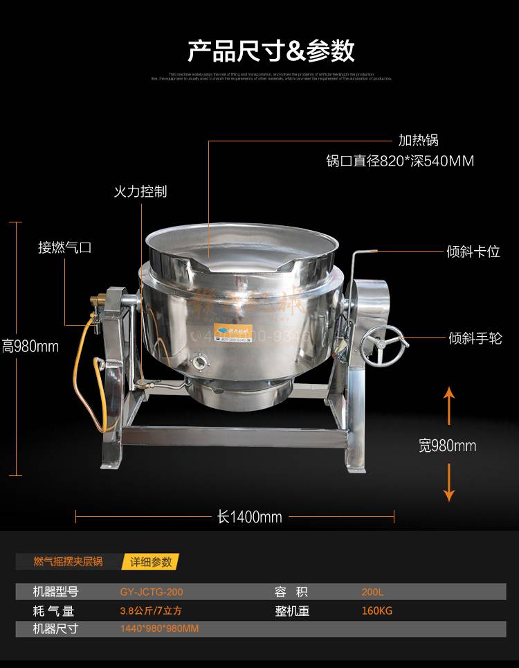 赣云牌中央厨房设备液化气半钢摇摆汤锅机器参数: