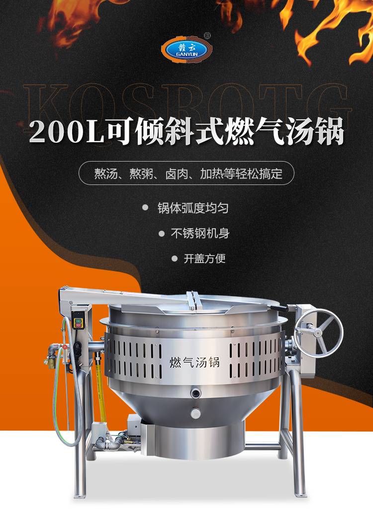 赣云牌200L中央厨房设备多功能燃气汤锅机器参数:
