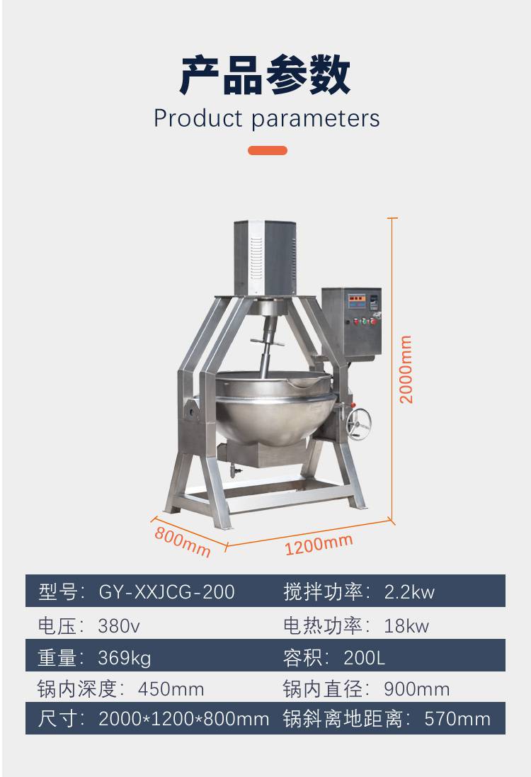 赣云牌200L中央厨房电热直立式半自动行星搅拌锅机器特点: